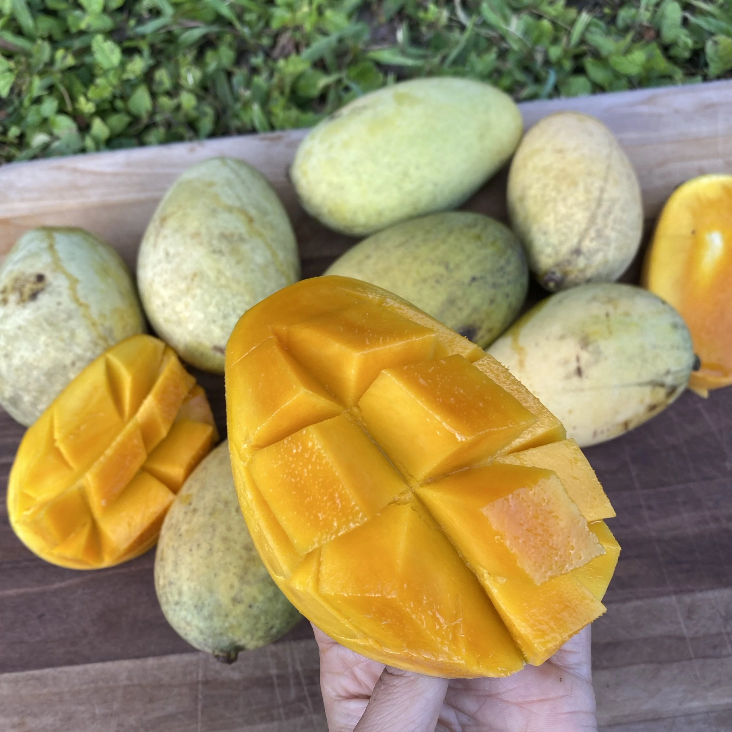 Flavor Profile: Orange Sherbet Mango tastes like an orange sherbet flavored push pop. The texture is smooth (no fibers) and juicy. It has an oval-oblong shape and turns yellow at maturity with an orange-yellow fiberless flesh.